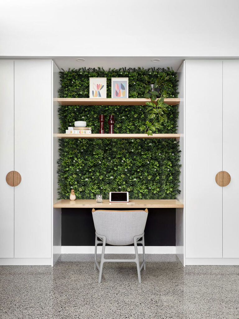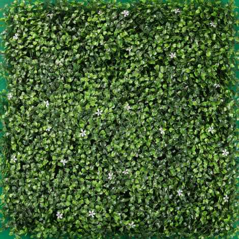 Follaje sintético modular diseñado para crear espacios verdes sin mantenimiento. Cada caja contiene 12 paneles de 50X50 cm que cubren 3 m² de superficie, ideales para muros verdes, divisiones de espacios o decoración de interiores y exteriores. El costo es por m2