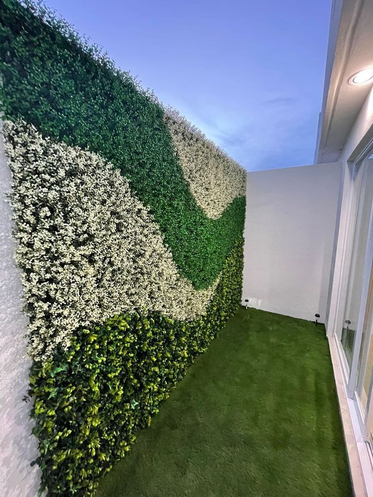 Follaje sintético modular diseñado para crear espacios verdes sin mantenimiento. Cada caja contiene 12 paneles de 50X50 cm que cubren 3 m² de superficie, ideales para muros verdes, divisiones de espacios o decoración de interiores y exteriores. El costo es por m2